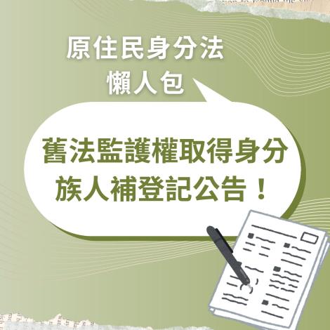 依《原住民身分法》第5條第1項第4款規定,部分族人循110年1月27日修正施行前第4條第3項規定取得原住民身分者,應於115年1月5日前,取用或以原住民族文字並列原住民父或母所屬原住民族之傳統名字,或從原住民父或母之姓,否則其原住民身分將依法喪失。